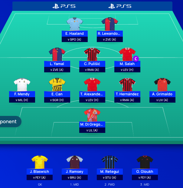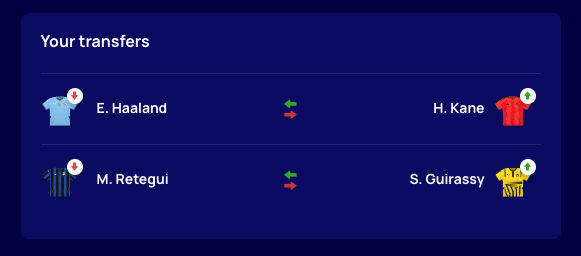 That said, my team is looking OK going forward but I’m just not sure what to do, all the plans in my mind include taking out someone who could very well score big. I’d love Guirassy or Kane (or both), but am I really going to take out Haaland? Or Lewa vs Crvena Zvezda? Or Retegui who is playing Stuttgart away?