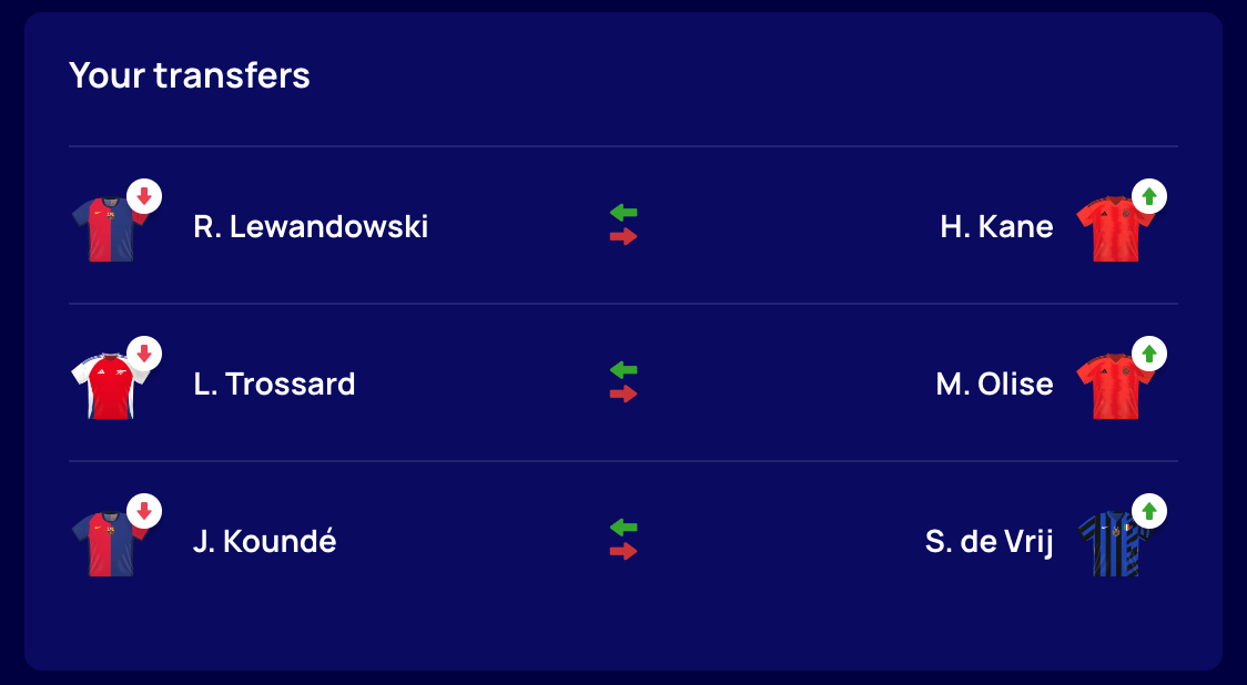 🛡️ DEF: Grimaldo, Hernandez/Timber & De Vrij (2/3 same as LL - moving Kounde to De Vrij unlocks the money for the other two transfers)