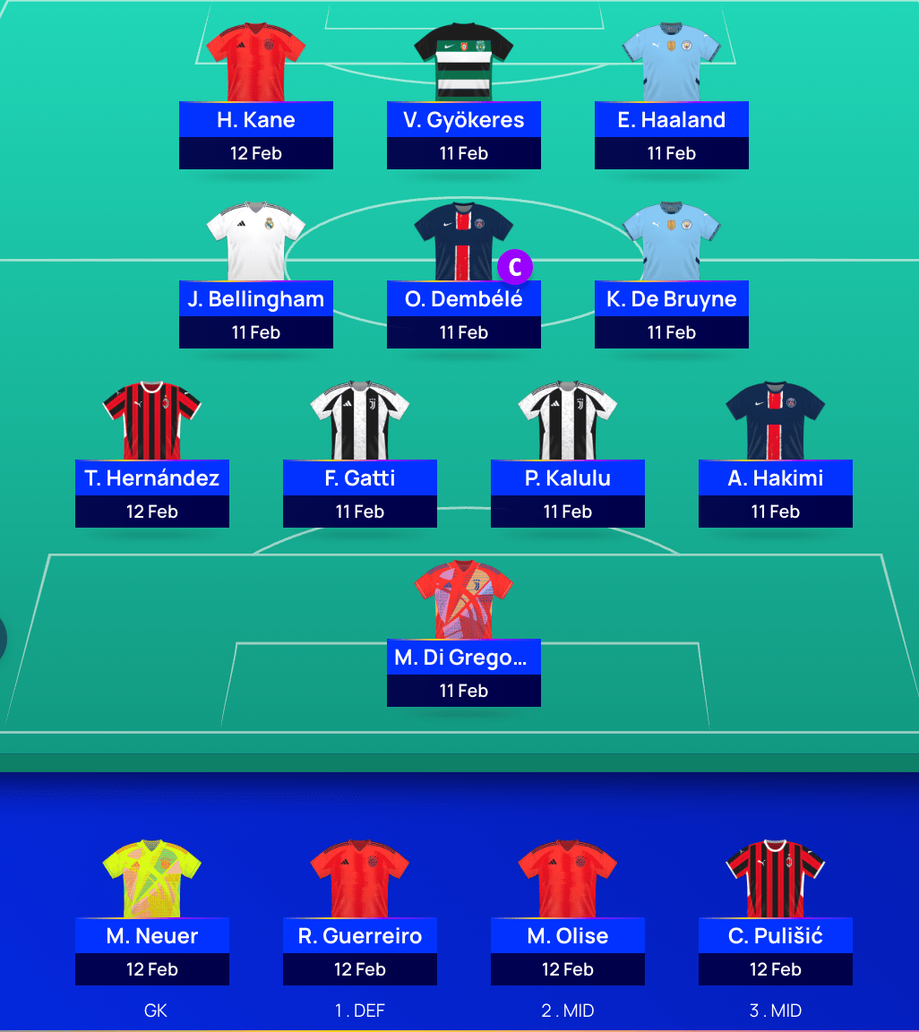 You can see my current MD9 draft below. Other players I am seriously considering are Retegui, Vini Jnr/Mbappe instead of Haaland and Guirassy.
